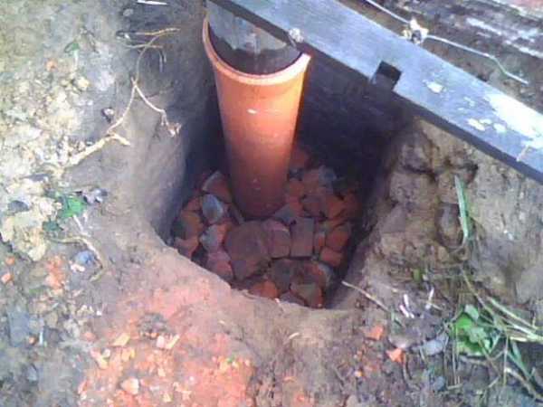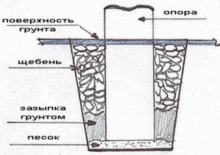 - На дно каждой ямы засыпают слой из песка высотой 20 сантиметров;