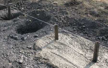 - Создание котлованов или траншей. В указанных местах осуществляется выемка грунта на глубину около 80 см. Дно котлованов хорошо утрамбовывается. Стоит отметить, что глубина выкапывания грунта должна совпадать с глубиной закладки фундамента основного строения.