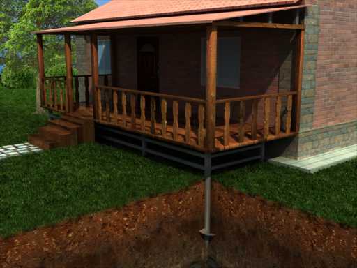Любой тип почвы годится для создания такого рода фундамента. Его довольно просто смонтировать и он идеально подойдет для террасы на участке с уклоном. Ко всему прочему такая основа может прослужить вам более ста лет, поскольку эксплуатационный период винтообразных свай очень большой.