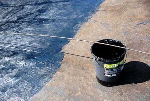 Вся площадь покрытия должна быть предварительно прогрунтована жидкой мастикой на битумной основе, для повышения гидроизоляционных свойств. Особое внимание уделяется проблемным зонам, таким как стыки соединения с ливневкой. Битумные мастики прекрасно ведут себя при низких температурах и имеют устойчивость к высоким температурам.
