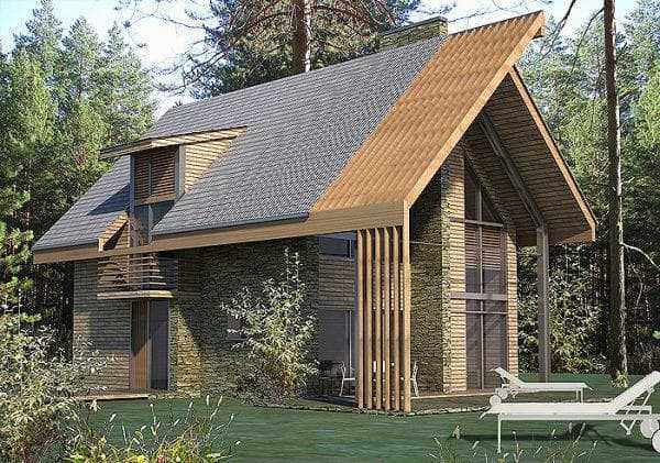 - При сооружении можно использовать разные углы наклона кровли. Разрешено размещать в ней и мансардные окна.