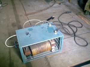 - Трансформатор. Устройство работает на переменном токе. Основной узел ничем не отличается обычного блока питания: на входе 220 вольт, на выходе требуемые 60 вольт. За счет возможности механического перемещения вторичной обмотки по сердечнику, меняется значение рабочего тока.