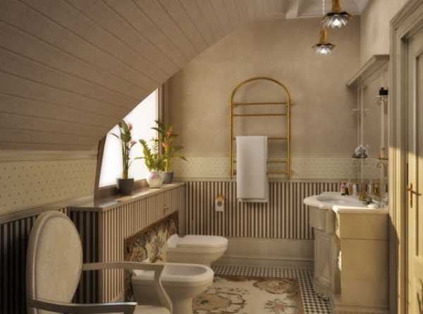 Популярный для ванной и туалета стиль прованс. Он создает уют, покой, старые вещи со своим шармом подчеркивают комфорт. Цвета спокойные с отдельными контрастными элементами, используется текстиль в больших количествах и натуральные материалы. Пол делают деревянным, для окрашивания стен применяется лессирующий лак, который придает древесине оттенок и сохраняет рисунок. Плитка у ванной соответствует общему цветовому решению.