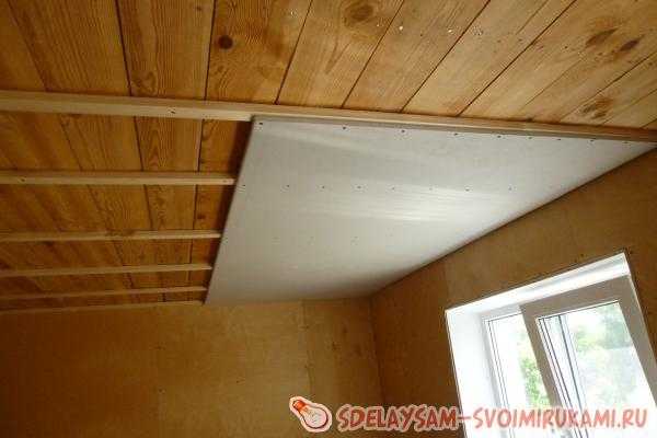 Это изделие из металлопрофиля, которое не реагирует на усадку дома. Шнуром на стене отбивают вертикальные метки, соблюдая расстояние от пола до 10 см, до потолка 40–70 см. Пространство под потолком впоследствии используют для установки элементов вентиляции и электропроводки. На бревенчатых стенах делают пазы, в них вставляют полосы прочного металла.