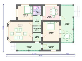 Вариант планировки одноэтажного дома с маленькой площадью