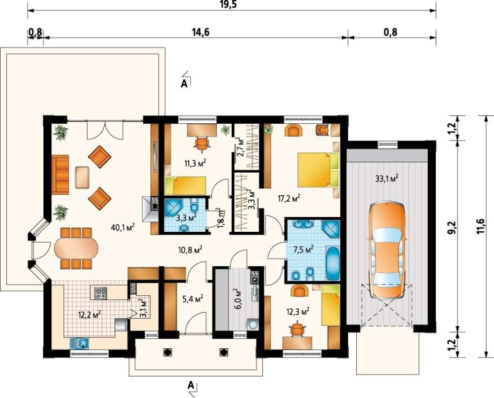 Проекты одноэтажных домов с тремя спальнями: 14 вариантов