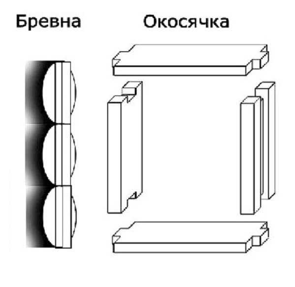 Различают два вида окосячки. Наиболее распространенный вариант, когда в торце бревен проемов делают пазы 50х50 мм, вставляя в них бруски таких же размеров. Однако данный вариант окосячки подходит лишь для деревянных конструкций, так как между брусками их можно запенить.