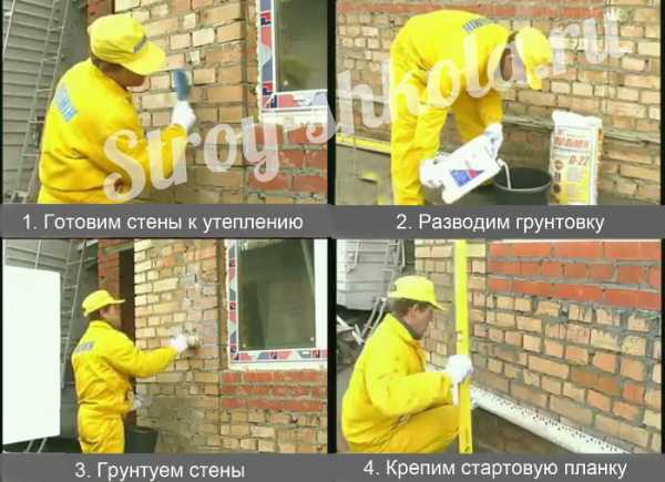 Выполнение наружного утепления состоит из комплекса работ.