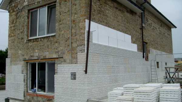 Наверное, пенополистирол оправдывает себя, если мы хотим выполнить утепление частного дома дешево и быстро. Оправдывает себя он одинаково в новых зданиях, так и в существующих старых домах.