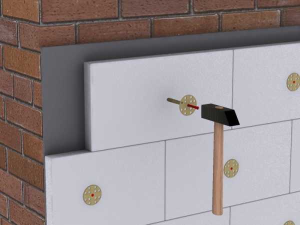 Крепление утеплителя дюбелями
