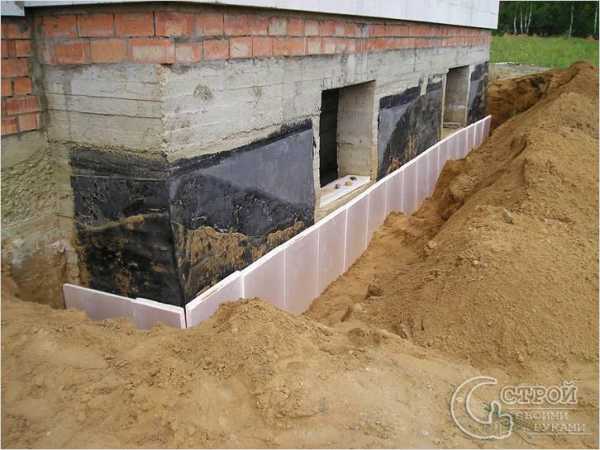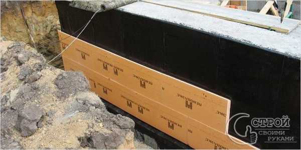 После полного высыхания гидроизоляции, приступают к утеплению фундамента: