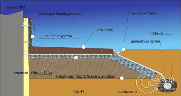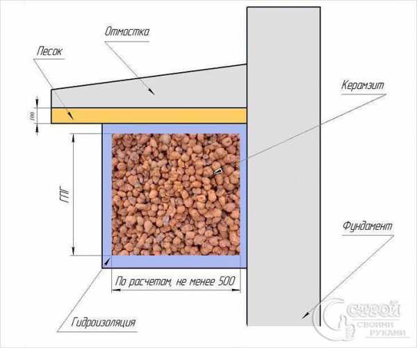- защищает фундамент от пучения грунта.