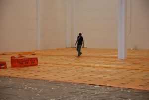 Весь слой закрывается пленкой, поверх настилается деревянный листовой материал для дальнейшего использования в качестве основы под финишную отделку.