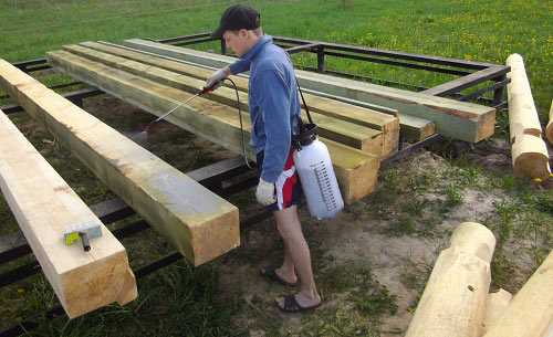 - После снятия досок осматриваются лаги и, если нужно, заменяются на новые. Затем проводится их обработка антисептическими противогрибковыми средствами и дается время на просыхание.