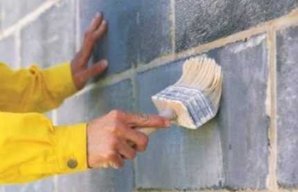 - После того как стена будет выровнена, для улучшения адгезии поверхность следует загрунтовать. Для этой цели применяются грунтовки с глубоким проникновением. Производить эту работу можно с помощью валика, кисти или пульверизатора.