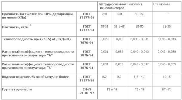 Технические показатели пеноплекса