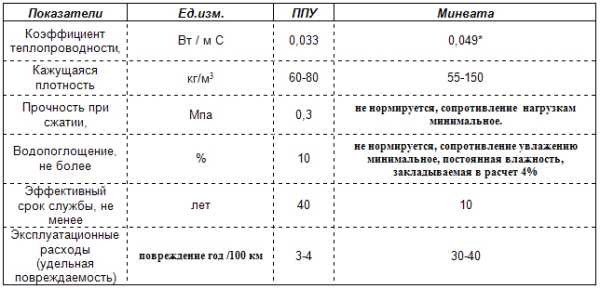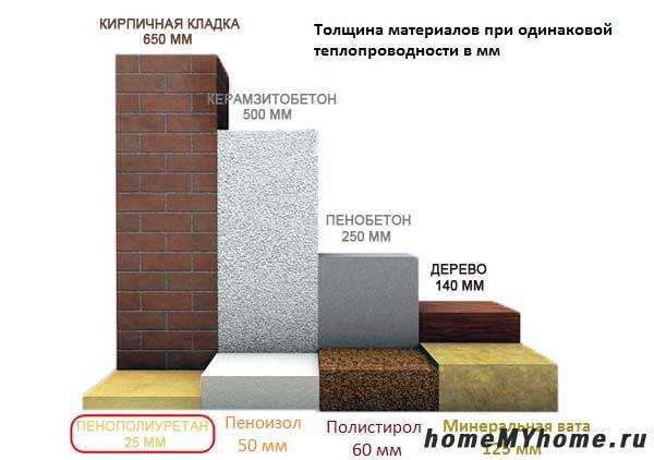 Среди всех утеплителей пенополиуретан имеет самую малую толщину слоя при одинаковой теплоизоляции