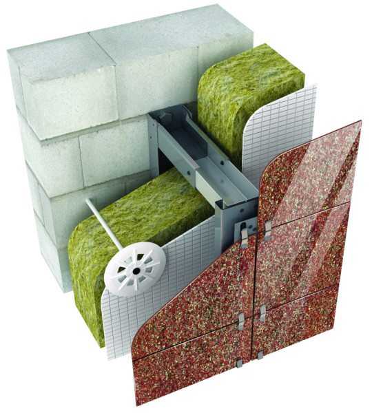 Со стороны фасада вату монтируют под навесную защитную конструкцию.