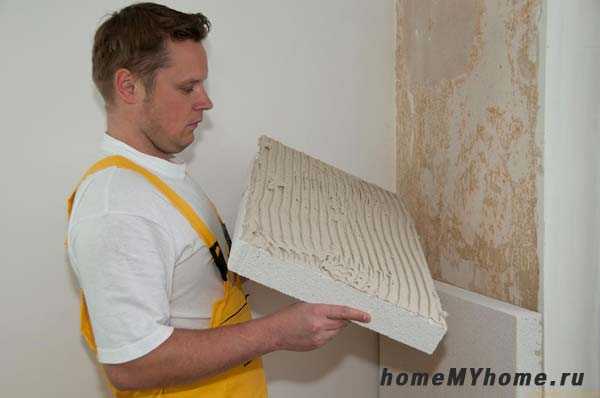 Приклеивание листов пенопласта на стену