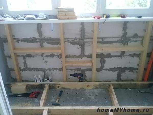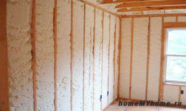 Утепленная пенополиуретаном стена, готовая к зашивке