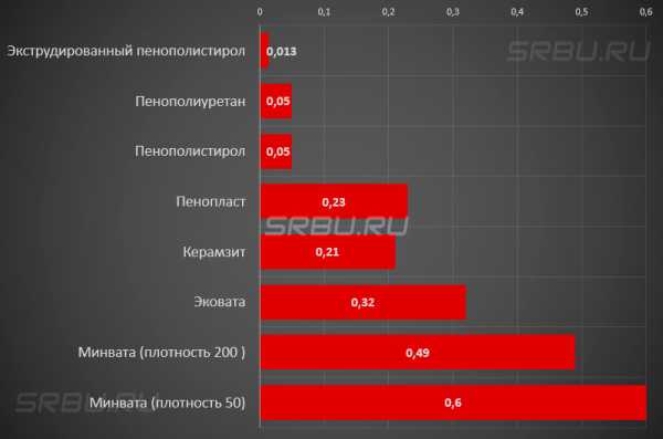 Очевидно, что 5 материалов, приведенных в начале графика, не подходят для утепления каркасной постройки в связи с низким значением паропроницаемости. Их применение вызывает герметизацию утепляемых поверхностей или конструкций, а плавучесть прекрасно иллюстрирует отсутствие способности пропускать пар.