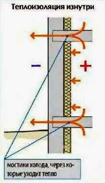 Внутренняя теплоизоляция не препятствует промерзанию внешних стен. В результате на их внутренней поверхности под слоем утеплителя и финишной отделки, скапливается конденсат, удаление которого естественным способом весьма затруднено. Это, в свою очередь, может привести к таким неприятным последствиям, как появление грибка и плесени.