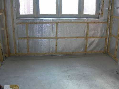 К стеновым поверхностям устанавливается деревянный каркас. Для его строительства обычно используют брусья шириной 5 см и толщиной 10 см.