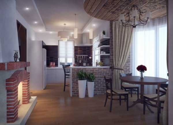 Дизайн кухни с камином в частном доме
