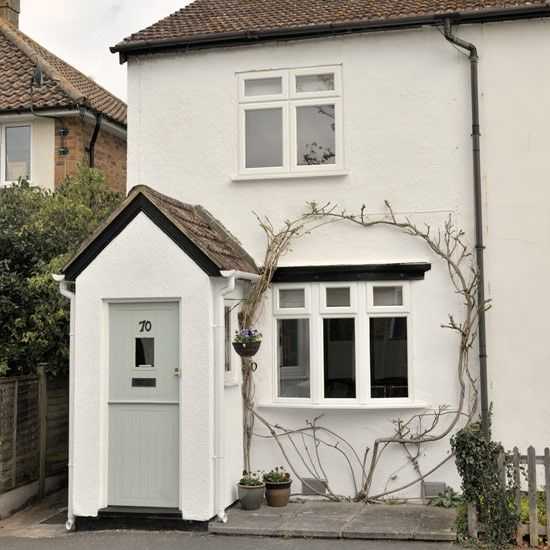 Несмотря на простоту конструкции и отделки, небольшой тамбур на фото удачно дополняет образ милой сельской усадьбы где-то в английской провинции.
