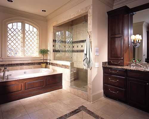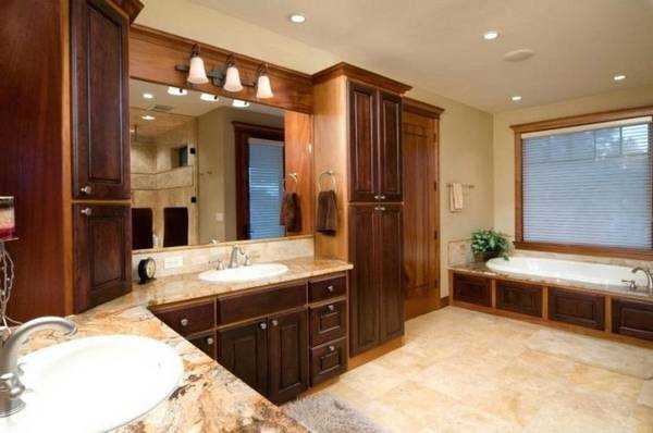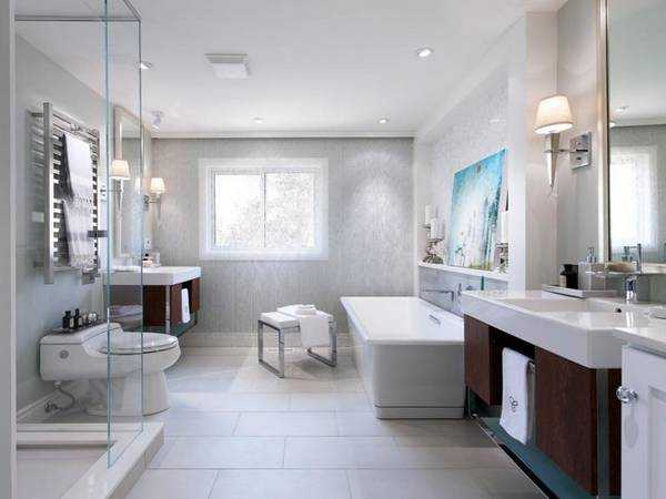 Если же вы планируете, ремонт имеющегося помещения ванной, то это потребует значительно меньших сил и капиталовложений. Основные подготовительные действия включают в себя демонтаж старого сантехнического оборудования, также отделки пола, стен и потолка. Чтобы лучше ориентироваться в современных тенденциях дизайна, предлагаем посмотреть на фото ванных комнат в частных домах, представленных ниже.