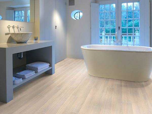 Для отделки пола в ванной комнате используются такие материалы как влагостойкий ламинат, керамическая половая плитка, линолеум, натуральный или искусственный камень либо делаются наливные полы из бетона. Все вышеперечисленные материалы хорошо подходят для отделки пола в ванной, однако выбор остаётся только за вами.