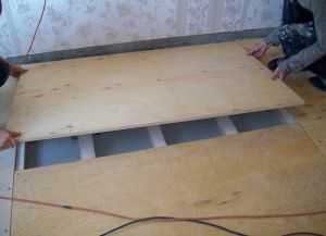 Ρ ΡΠΊΠ»Π°Π΄ΡΠ²Π°ΡΡ ΠΏΠΎΠ»ΠΎΠ²ΡΡ ΡΠΏΡΠ½ΡΠΎΠ²Π°Π½Π½ΡΡ Π΄ΠΎΡΠΊΡ ΠΈΠ»ΠΈ Π»ΠΈΡΡΡ ΡΠ°Π½Π΅ΡΡ ΡΠΎΠ»ΡΠΈΠ½ΠΎΠΉ ΠΎΡ 10 ΠΌΠΌ, Π·Π°ΠΊΡΠ΅ΠΏΠ»ΡΡ ΠΈΡ