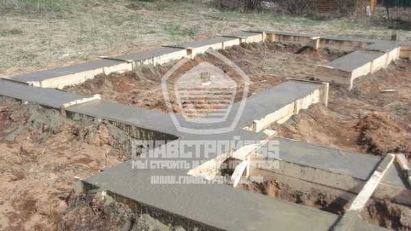 Поскольку нагрузка дома из бруса небольшая, соответственно можно обойтись без усиленного фундамента. В основном используется фундамент ленточного типа, однако порой применяется столбчатый фундамент.