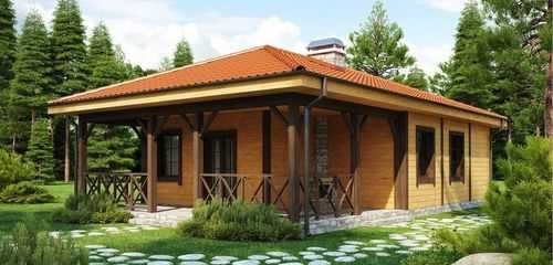 Закупается проектный комплект красивого одноэтажного (полутора, двух этажного) дома из бруса, монтаж которого производит сторонняя организация или частная бригада. В отдельных случаях на таком разделение можно существенно сэкономить.