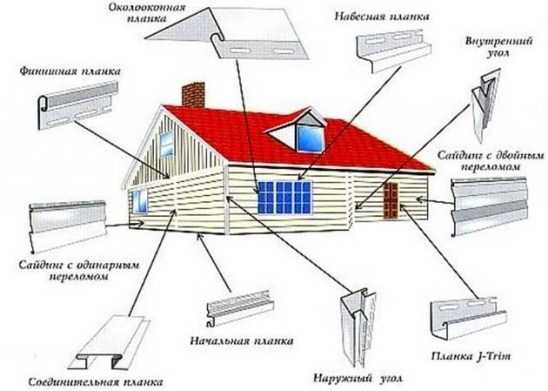 Также планками обрешетки обрамляются все проемы – окна и входные двери. При этом деревянные элементы лучше прибивать к стене гвоздями, а не прикручивать саморезами. Последние не дают конструкциям возможности двигаться при усадке или тепловом расширении. Важный момент: поверхности всех брусков должны быть строго вертикальными и выверенными в одну плоскость. Теперь можно приступать к монтажу сайдинга, используя стартовую и другие виды планок, показанные на рисунке: