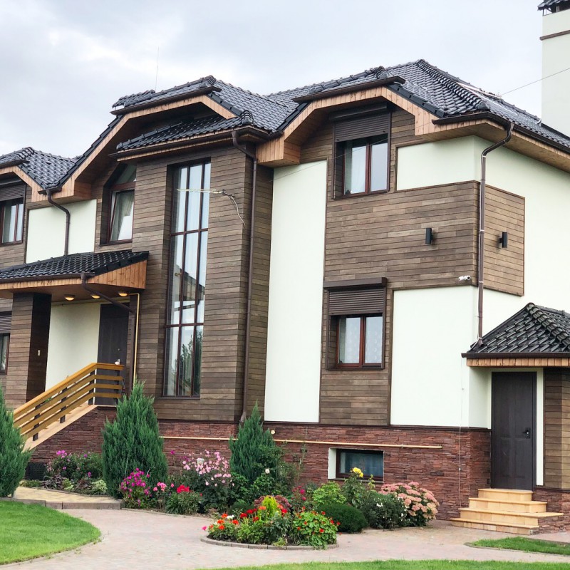 Современная фасадная отделка в большинстве отвечает данным требованиям. Это качественные материалы в различных ценовых сегментах, которые одновременно комбинируют и сочетают декоративную и защитную функцию. Я предлагаю обратить внимание на большинство популярных решений, чтобы сделать правильный выбор для собственного загородного дома!
