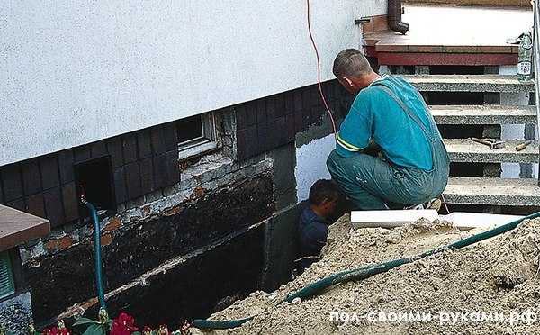 Работу можно провести своими силами. Проще всего это делать на стадии заливки фундамента и строительства.