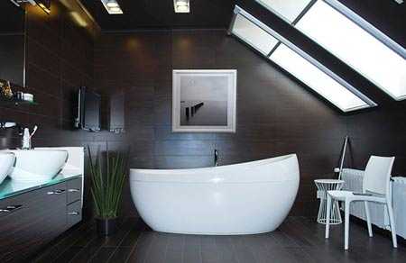 Оригинальный интерьер ванной комнаты в частном домеСтоит отметить, что привычные для многоквартирных домов полотенцесушители, также могут утеплить ванную. Тогда вас, наверняка, не потревожит конденсат на стенах, образующийся из-за холодных стен, а также плесень и грибок, для которых недостаточно теплая атмосфера комнаты идеальное место.