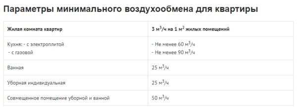 По СНиП квартиры в МКД вентилируются, в том числе, за счет приоткрытых форточек или щелевых отверстий в оконных конструкциях. Если окна постоянно остаются герметично закрытыми, то нормального воздухообмена в помещении не будет. В нормативах установлена скорость, с которой должен происходить обмен воздуха. Приведем эту информацию в виде таблицы.