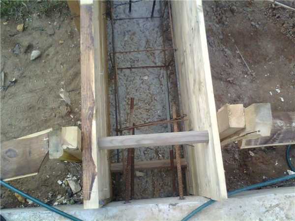 Основание этого типа возводится примерно по той же технологии. Единственное — в этом случае вместо траншеи выкапываются ямы на расстоянии не более 1.5 м друг от друга. Опалубку под бетон делают из свернутого рубероида. В каждую яму вставляют каркас из четырех связанных хомутами прутов. В залитый, но не успевший застыть бетон сверху следует вставить анкерные болты для крепления нижнего венца стен.