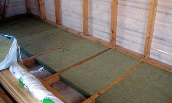 Далее из доски толщиной 20 мм делают черновой пол, который служит основой для монтажа изоляционных материалов. Выстилают пароизоляцию и укладывают слой утеплителя.
