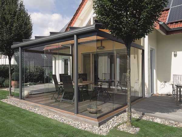 Если планируется эксплуатация помещения в зимний период, то веранда из стеклопакетов будет отличным вариантомВеранда в зависимости от возраста дома может быть пристроена как вплотную к строению, так и в виде плавающего соединения посредством шипа и паза. Независимо от выбранной формы и типа пристройки обязательным условием является наличие входа из дома, а не только с улицы.