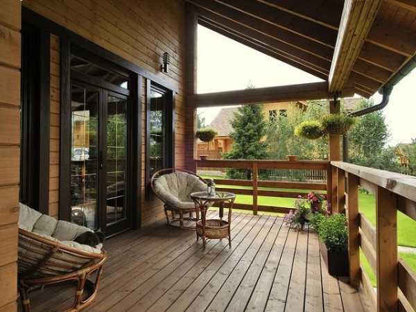 Хорошо, когда дизайн веранды частного дома повторяет общий стиль дома.
