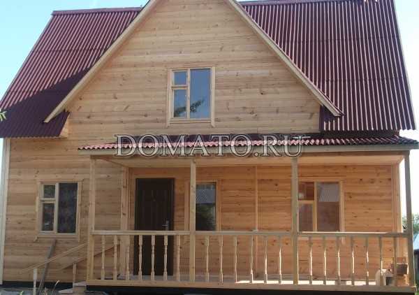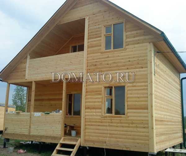 Фото террасы деревянного дома из бруса по двум сторонам, с ограждением из резной вагонки и точеных балясин