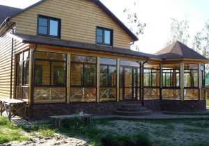 Традиционная веранда застеклена практически полностью. Современное остекление террас и веранд — панорамное, сверху донизу. Но такое остекление имеет свои минусы: