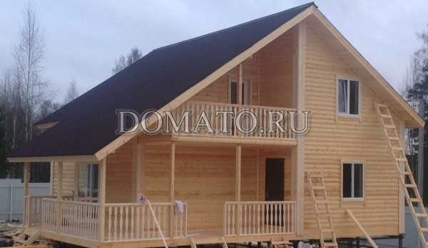 При изготовление террасы в доме из бруса берут выпуски сверху на необходимую длину, подпирают их опорами(столбами) из бруса, снизу идёт общая обвязка с домом. Сверху в столбы, между крышей и опорой устанавливают винтовые регуляторы усадки, так как деревянный дом и терраса дают неравномерную усадку из за разницы в массе и размерах.