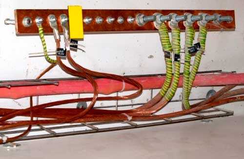 - В точке распределения сети заземления по дому соедините металл болтами с обмоткой из медного провода. Распределите кабель по инженерной электрической сети.