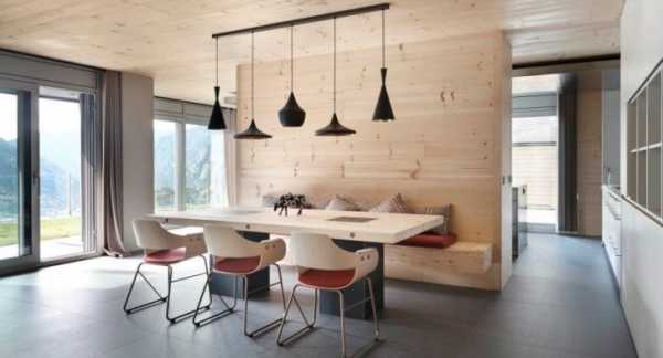 Некоторые оттенки дерева, покрытые прозрачным лаком, придают помещениям визуальную «теплоту», подчёркнутую светильниками
