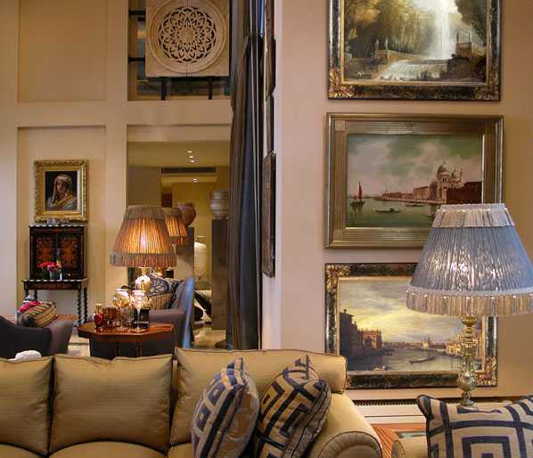 К этой категории относят интерьеры типа шанель, рококо, барокко и арт-деко. Это направления вызывающие женский восторг. Внутренняя отделка дома не просто статусна, она подчеркивает отменный вкус обитателей. Наиболее часто воспроизводим барокко. Для его реализации потребуется задрапировать стены роскошными тканями и украсить все это великолепие лепниной. Оконные и дверные проемы скрывают за занавесями из атласа, велюра, бархата. Меблирование выполняют предметами из древесного массива с неизменной инкрустацией. В спальню обязательно надо поставить кровать с балдахином. Освещение такой отделки коттеджа обеспечивают хрустальными, как правило, многоярусными люстрами массивной конструкции.