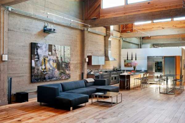 Очень близкий и часто соединяемый с лофтом стиль. Вот это уже решение для внутренней отделки дома каменной кладки, так как отличительной стилистической чертой является грубые, не декорированные, бетонные, блочные, каменные или кирпичные стены. Их можно просто покрасить, но сделать это без предварительных штукатурных работ. Задача такой внутренней отделки коттеджа – подчеркнуть рельефность каменной поверхности.